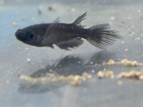 漆黒のボディに金の輝きをまとい、水槽の中でひときわ存在感を放ちます。
